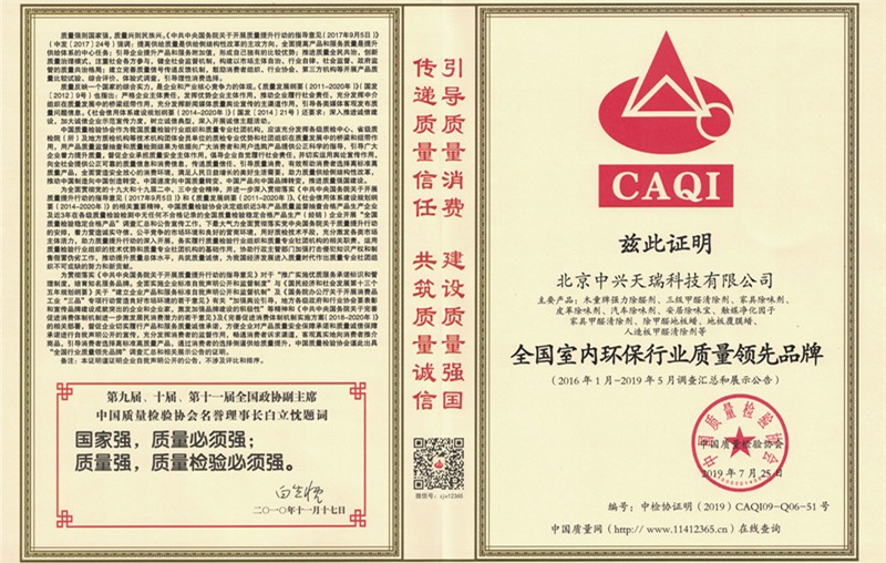 2019年獲全國室內(nèi)環(huán)保行業(yè)質(zhì)量品牌
